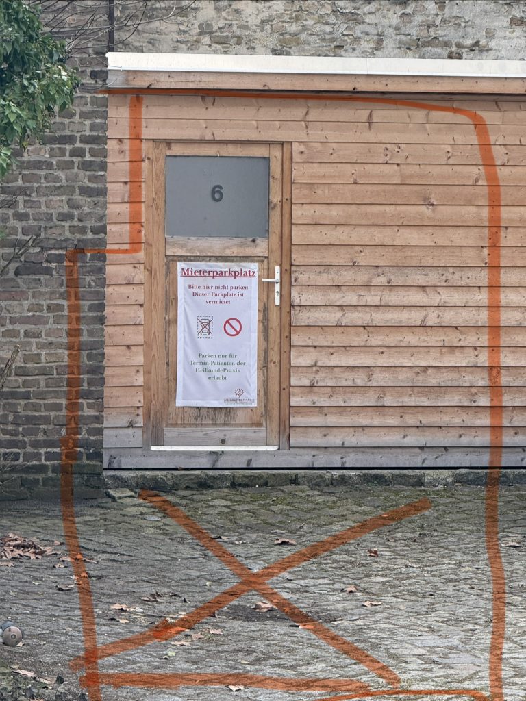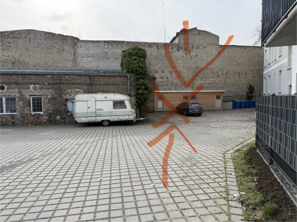 Parkplätze auf dem Hof befinden sich hier entlang (Bitte nutzen Sie keine anderen Stellplätze auf dem Hof, da diese an Anwohner vermietet sind):